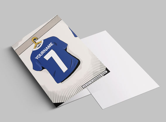Your name stars for the team of your choice! Fully personalised in an original retro illustration. Choose your name and number. Designed to appeal to all ages as a truly unique greeting card. A6. Add your own message. Envelope supplied. You can ship direct to recipient. Preview your personalised card in 60 seconds.